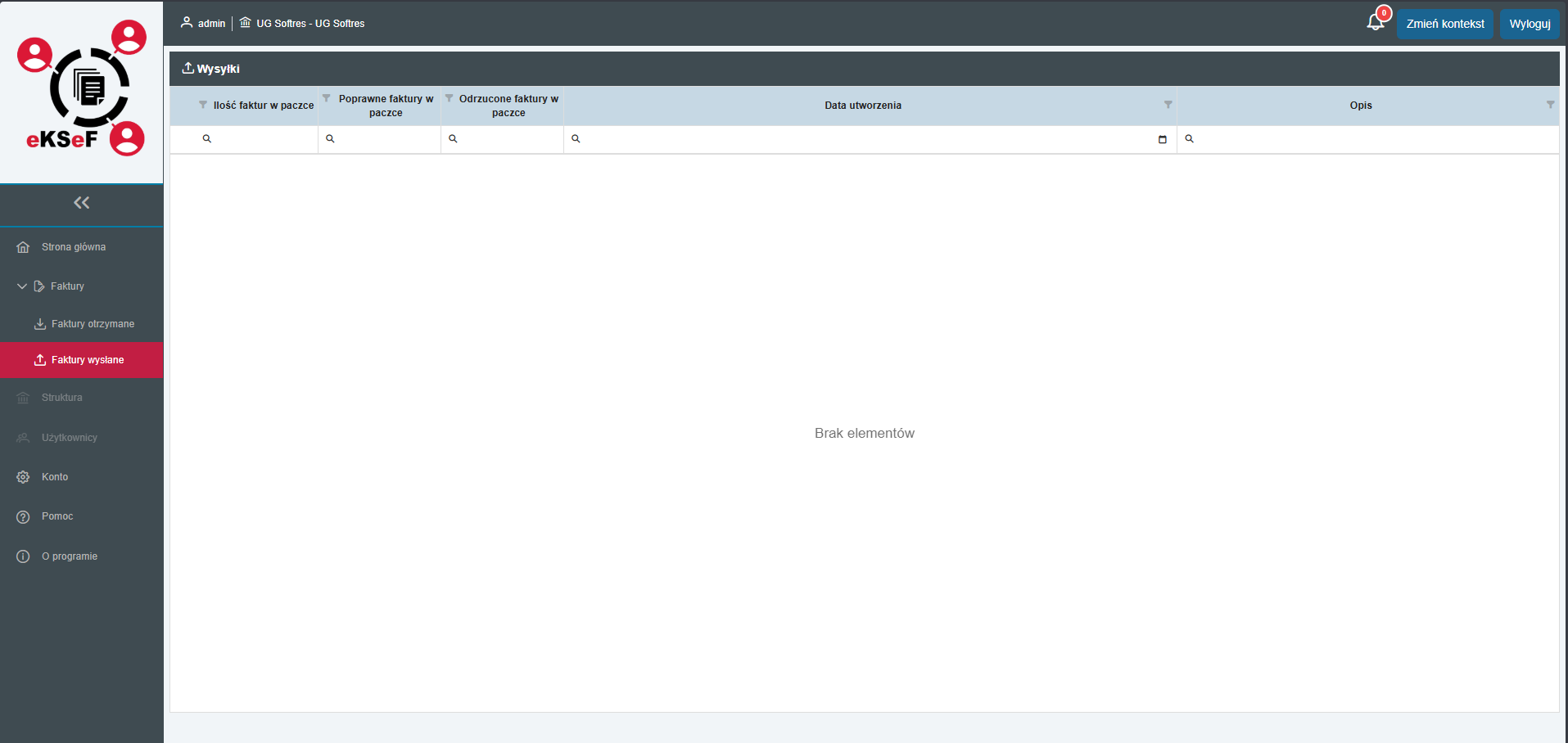 - Ilość faktur w paczce: Całkowita liczba dokumentów, które zostały przekazane do wysłania w danej sesji.