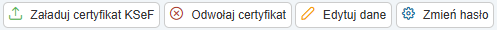 - Załaduj certyfikat KSeF: Pozwala na wgranie pliku certyfikatu i klucza (np.