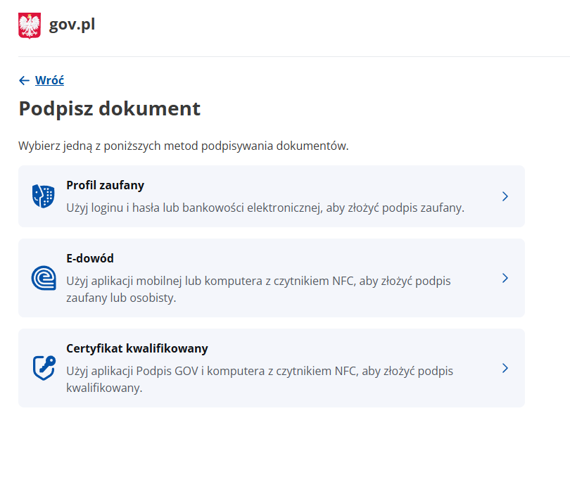 1. Wejdź na stronę do podpisania dokumentu: Kliknij w ten link: moj.gov.pl (otworzy się w nowej karcie).