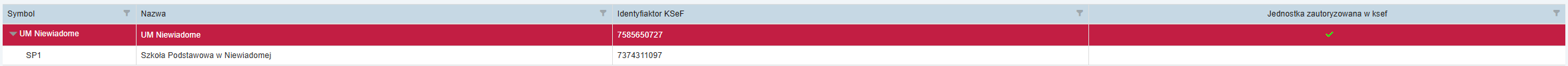 - Jednostka zautoryzowana w KSeF: Zielony znacznik (✅) informuje, że jednostka jest autoryzowana w KSeF.