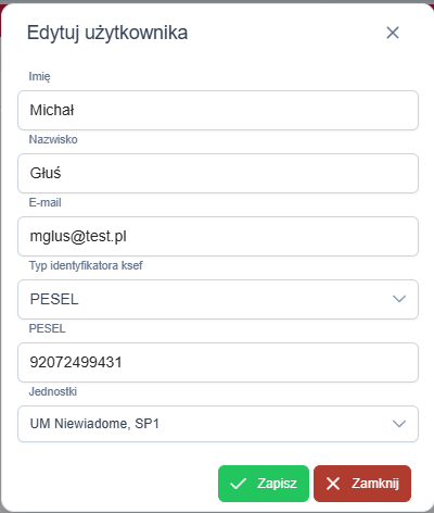 - Możesz również dodać lub odebrać dostęp do Jednostek z poziomu tego okna.