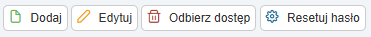 Przycisk Odbierz dostęp służy do trwałego usunięcia konta z systemu.