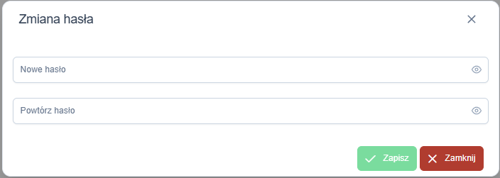 - Wpisz nowe hasło w obu polach (użyj ikony oka 👁️, aby sprawdzić poprawność).