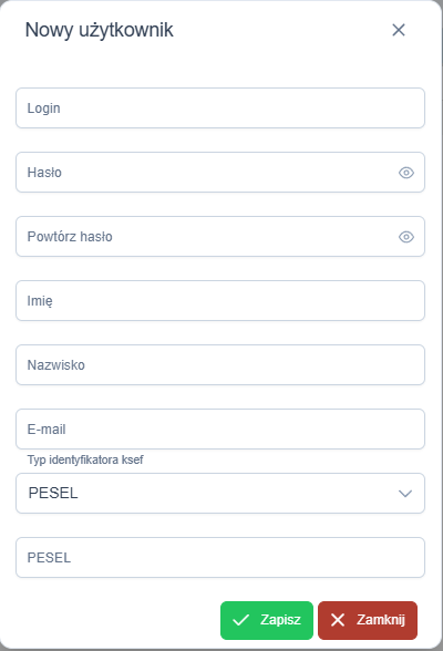 - Login i Hasło: Ustal dane do logowania (użytkownik zmieni hasło przy pierwszym wejściu).