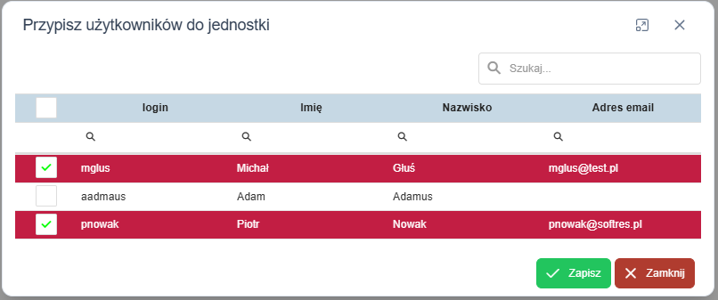 Użytkownicy w jednostce